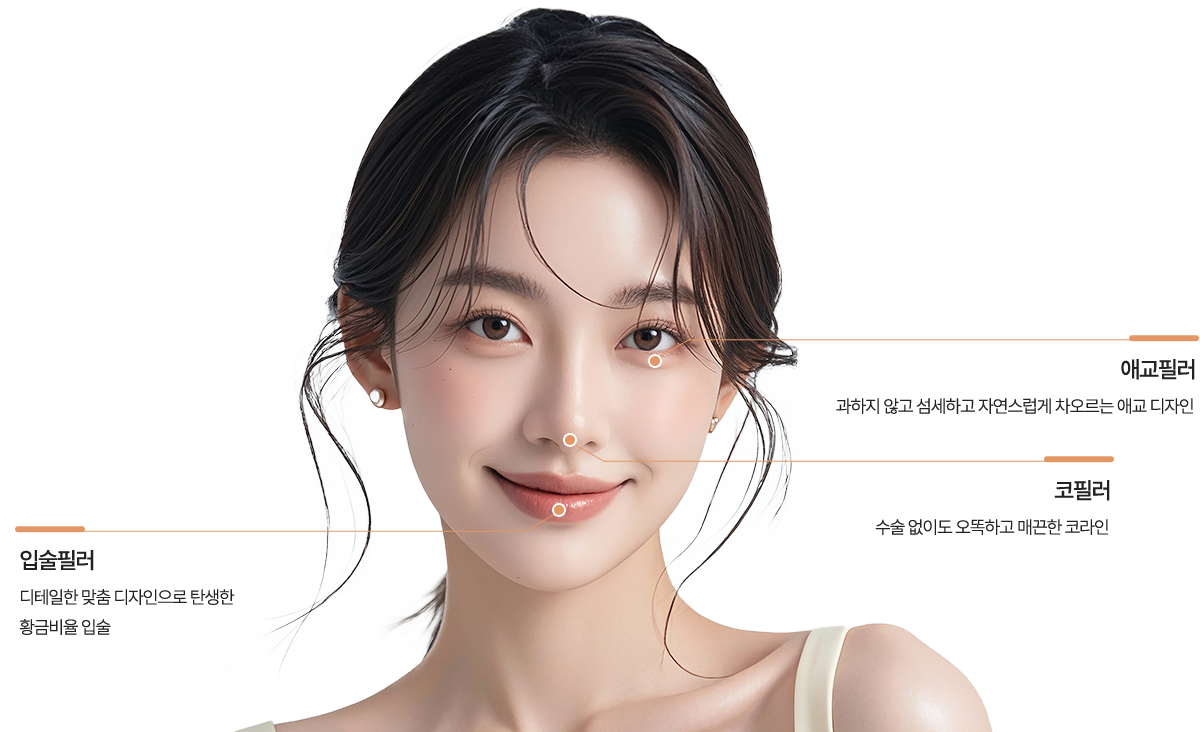얼굴의 곳곳 작은 포인트를 정교하게 채워 눈에 띄지 않을 만큼 자연스럽지만, 시선을 머물게 하는 변화 섬세한 한방울의 볼륨이 당신을 더욱 특별하게 만듭니다.