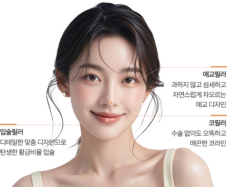 얼굴의 곳곳 작은 포인트를 정교하게 채워 눈에 띄지 않을 만큼 자연스럽지만, 시선을 머물게 하는 변화 섬세한 한방울의 볼륨이 당신을 더욱 특별하게 만듭니다.